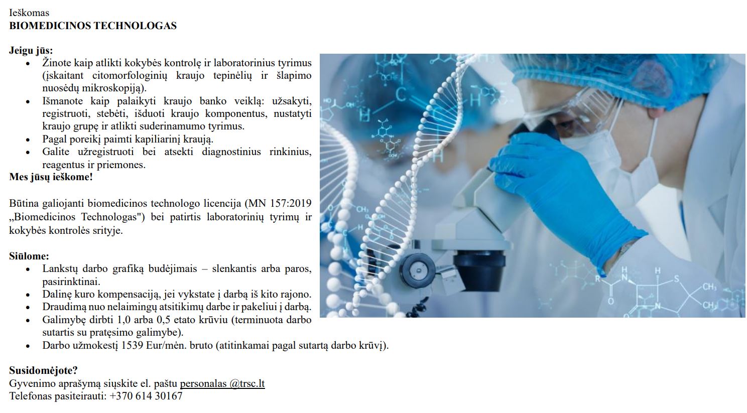 Bir 10 2025 Biomedicinos technologas(-ė) VIKOKarjeraNaujienosDarbo skelbimaiBiomedicinos technologas(-ė)