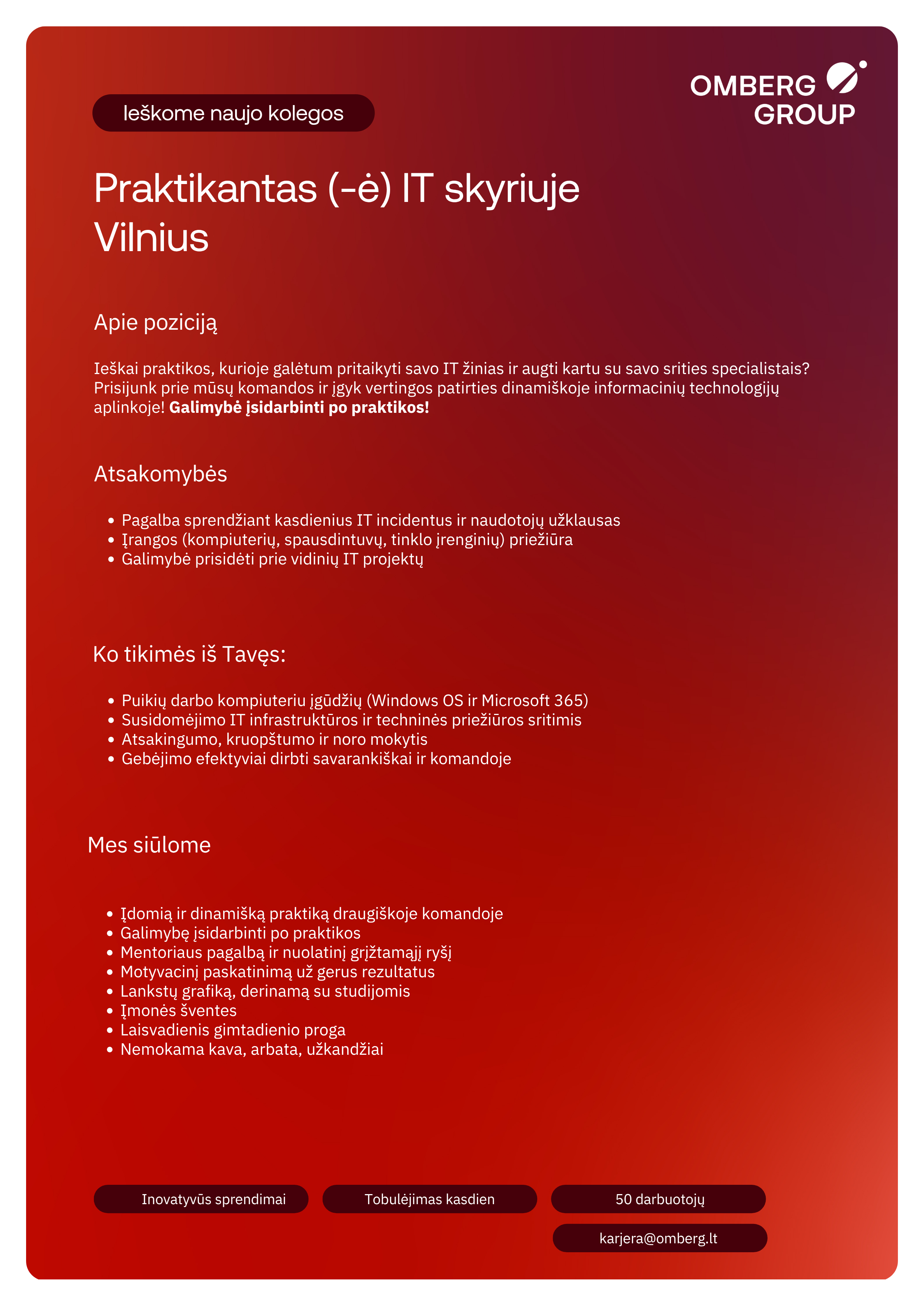 Lap 16 2025 OMBERG GROUP. Praktika IT skyriuje VIKOKarjeraNaujienosDarbo skelbimaiOMBERG GROUP. Praktika IT skyriuje