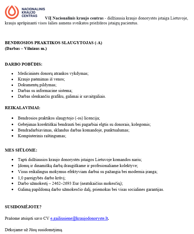 Bendrosios praktikos slaugytojas(-a) Vilniuje
