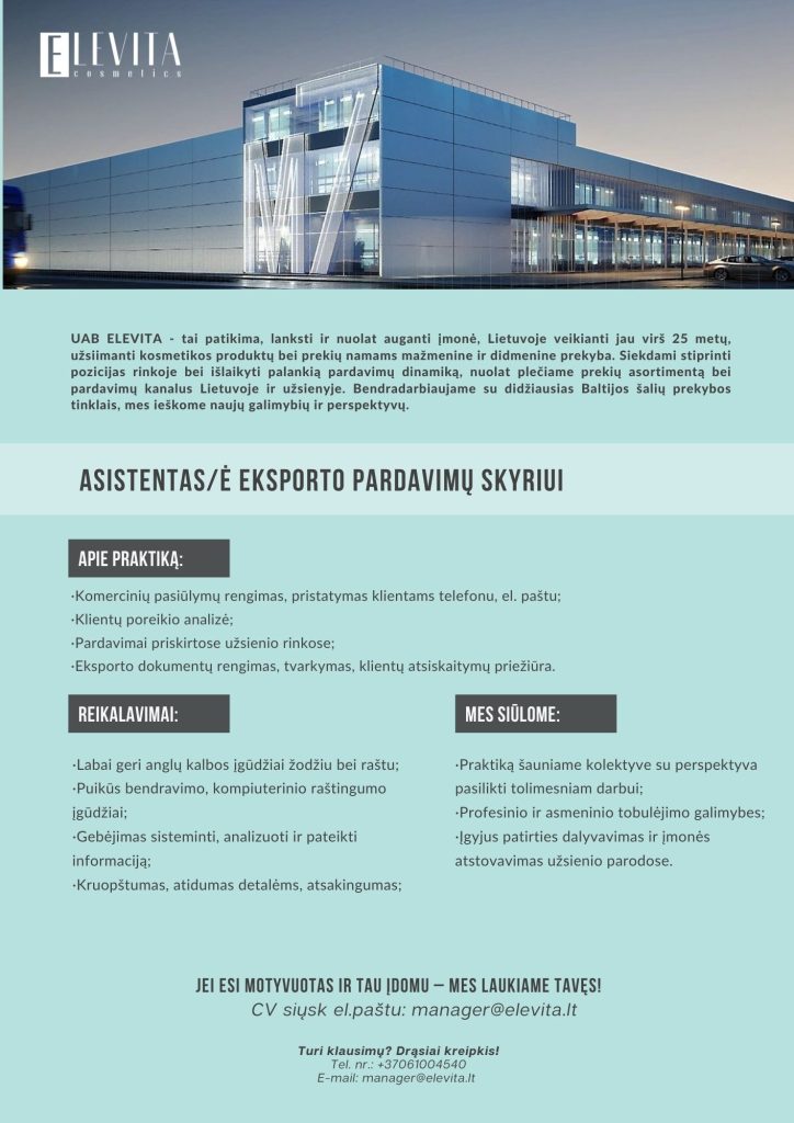 Eksporto pardavimo skyriaus asistentas(-ė)