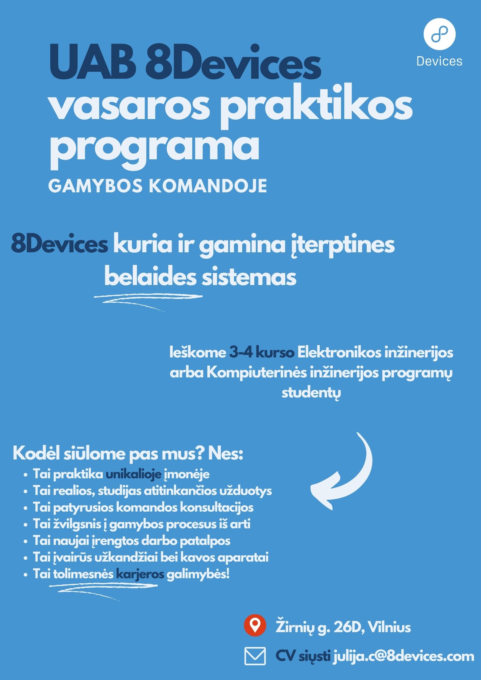 Gamybos praktika (vasarą) Elektronikos inžinerijos ir Kompiuterių inžinerijos studentams