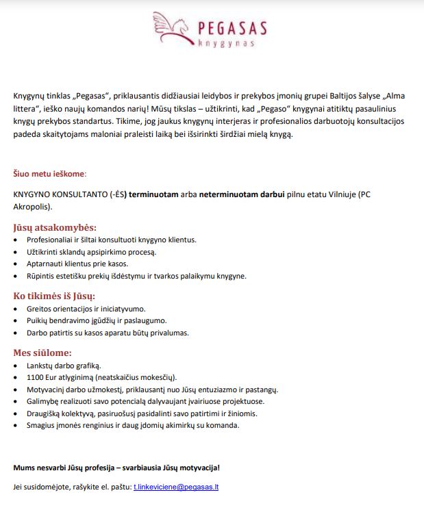 Knygyno konsultantas(-ė)