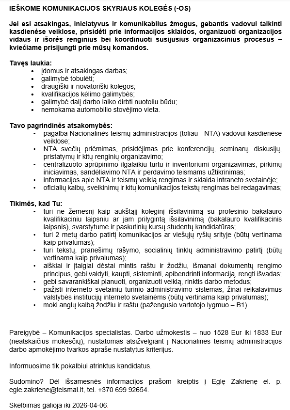 KOMUNIKACIJOS SKYRIAUS KOLEGĖ (-A)