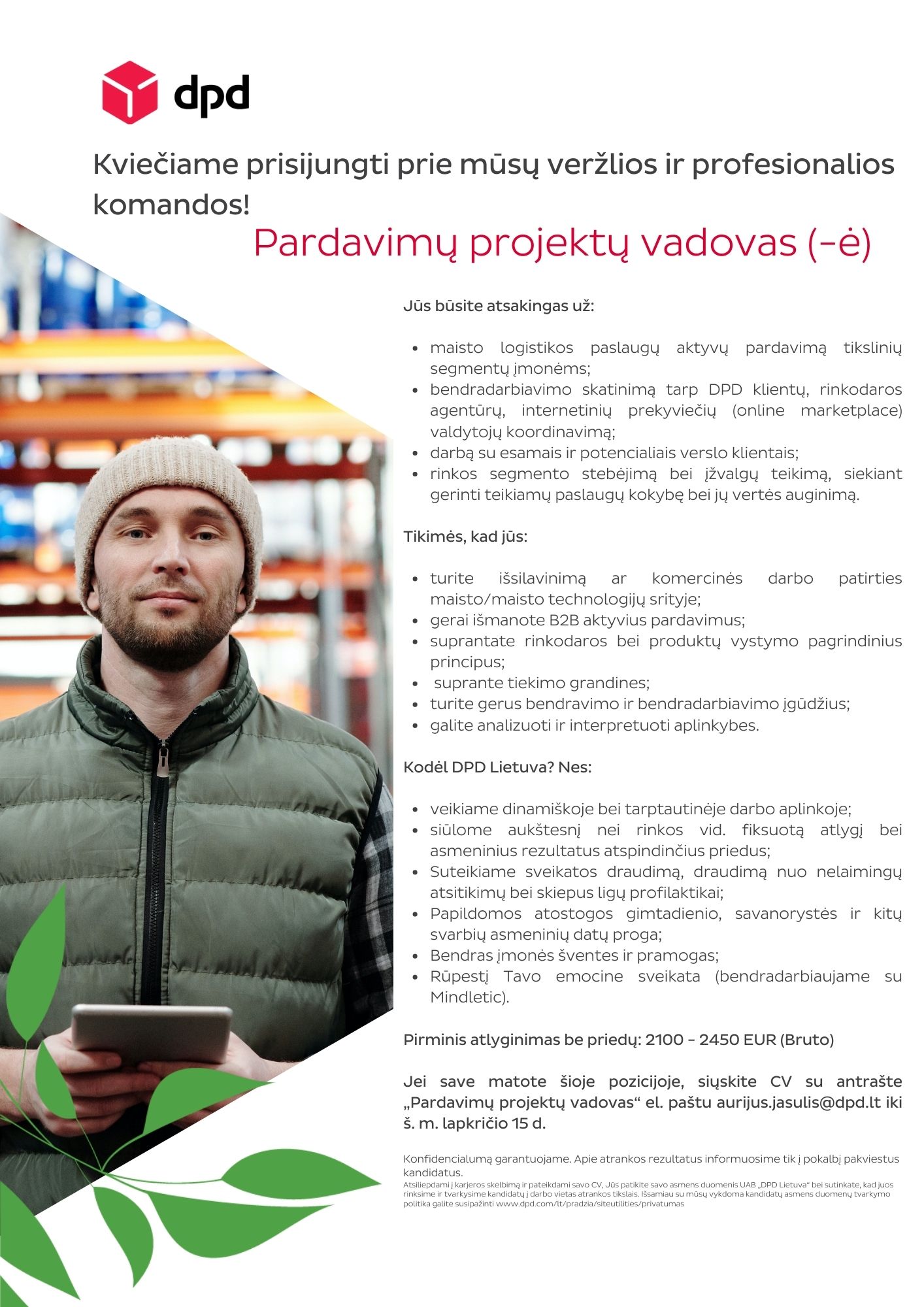 Pardavimo projektų vadovas(-ė). Maisto technologija
