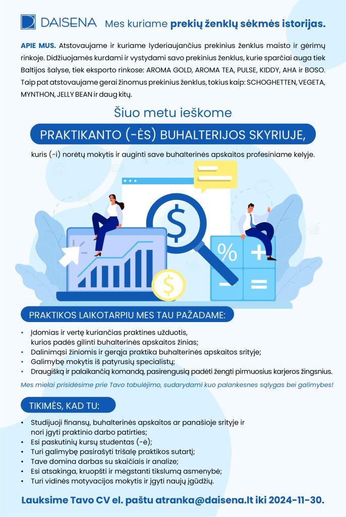 Praktika Apskaitos skyriuje. DAISENA