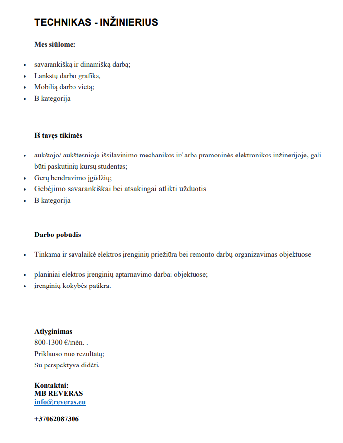 Technikas-inžinierius(-ė)