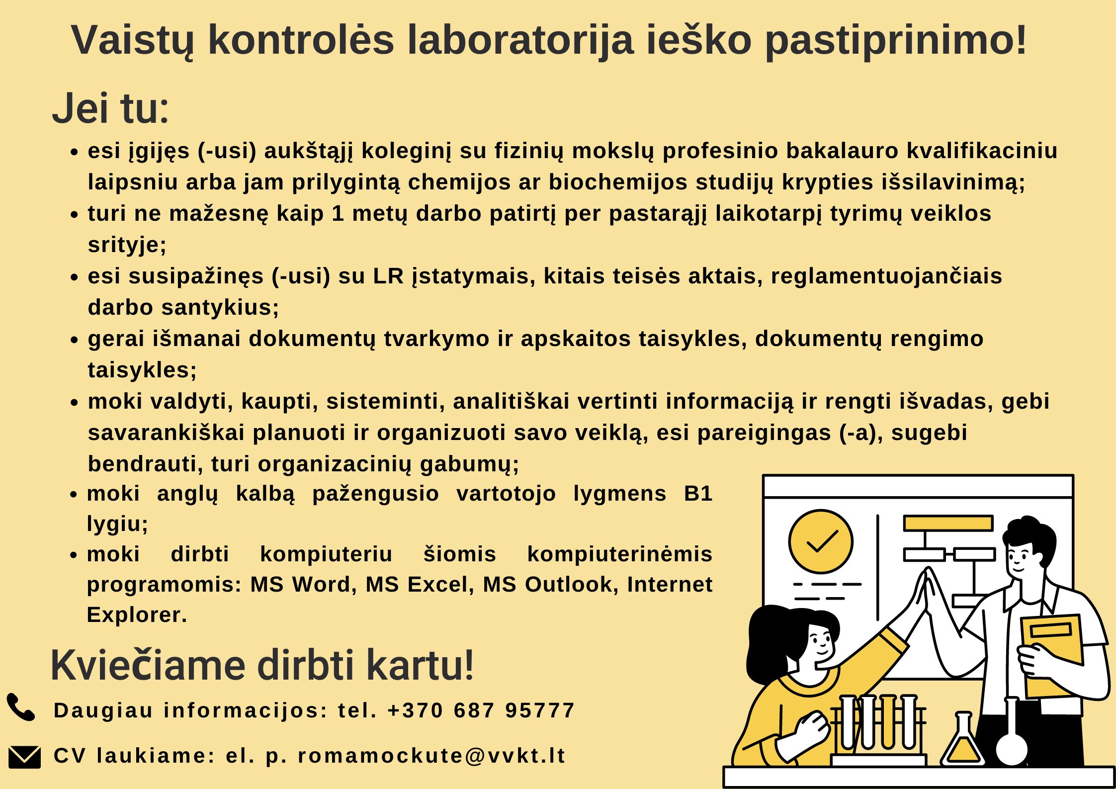 Vaistų kontrolės laboratorija ieško darbuotojo(-os)