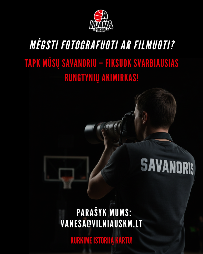 Ieško studentų, kurie domisi krepšiniu, fotografija ar filmavimu, nori savanoriauti arba atlikti praktiką Vilniaus krepšinio mokykloje. www.vilniauskm.lt