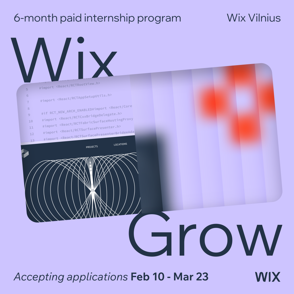 Check out www.wixgrow.lt to learn more and apply. Join Wix for the opening event to hear all about the Wix Grow internship, the recruitment process, the home assignment, and whether this program is the right fit for you.